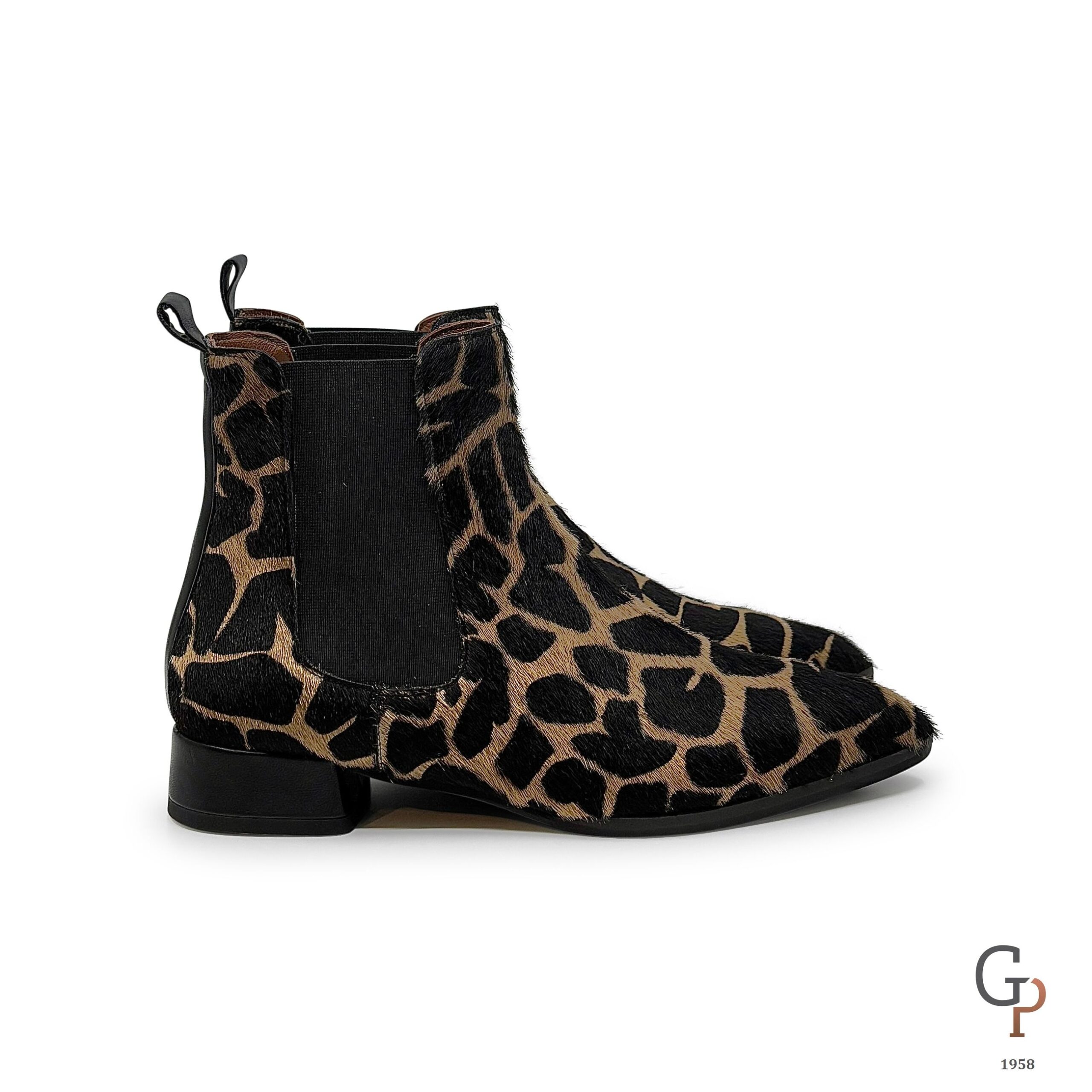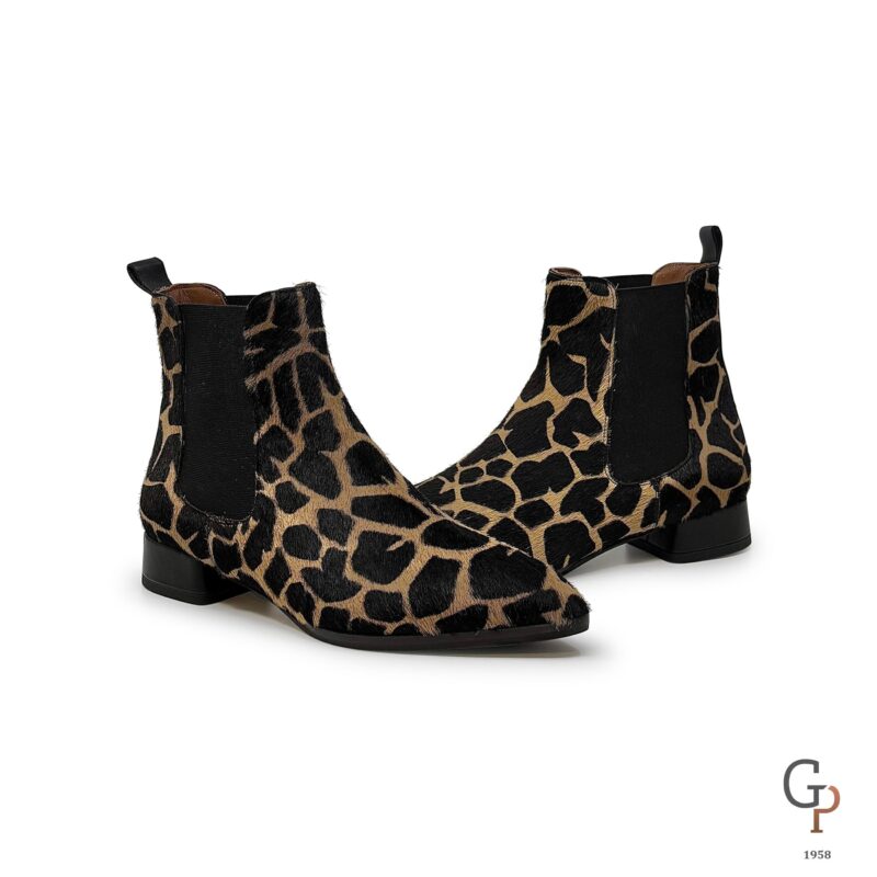 Beatles in cavallino, stampa giraffa, tacco di 2 cm, elastici laterali a contrasto. Morbido e comodo per un look originale e unico. Made in Italy.
