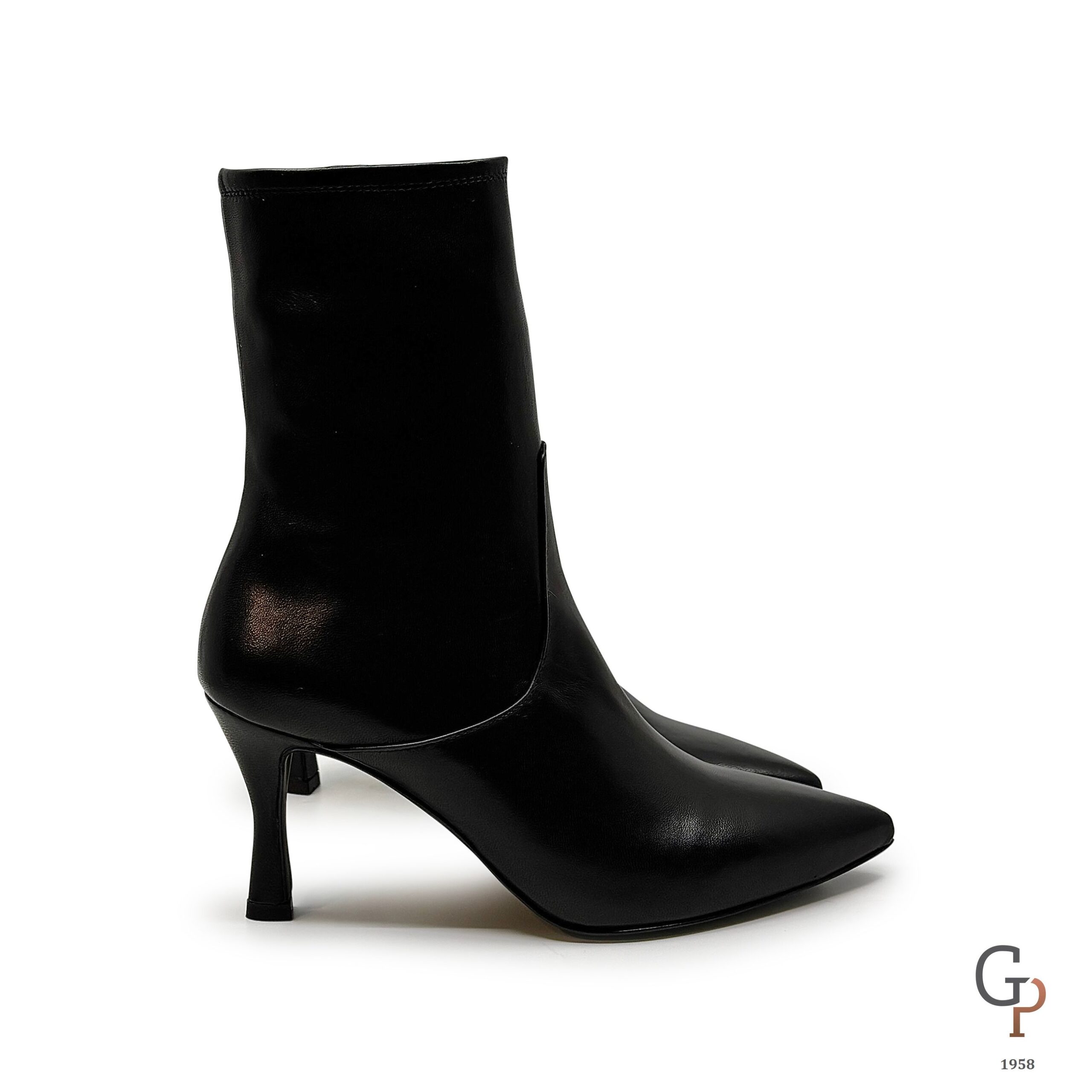 Stivaletto in pelle gambale alto. Tacco a clessidra di 7,5cm. Raffinato e innovativo, perfetto per una serata speciale. Made in Italy