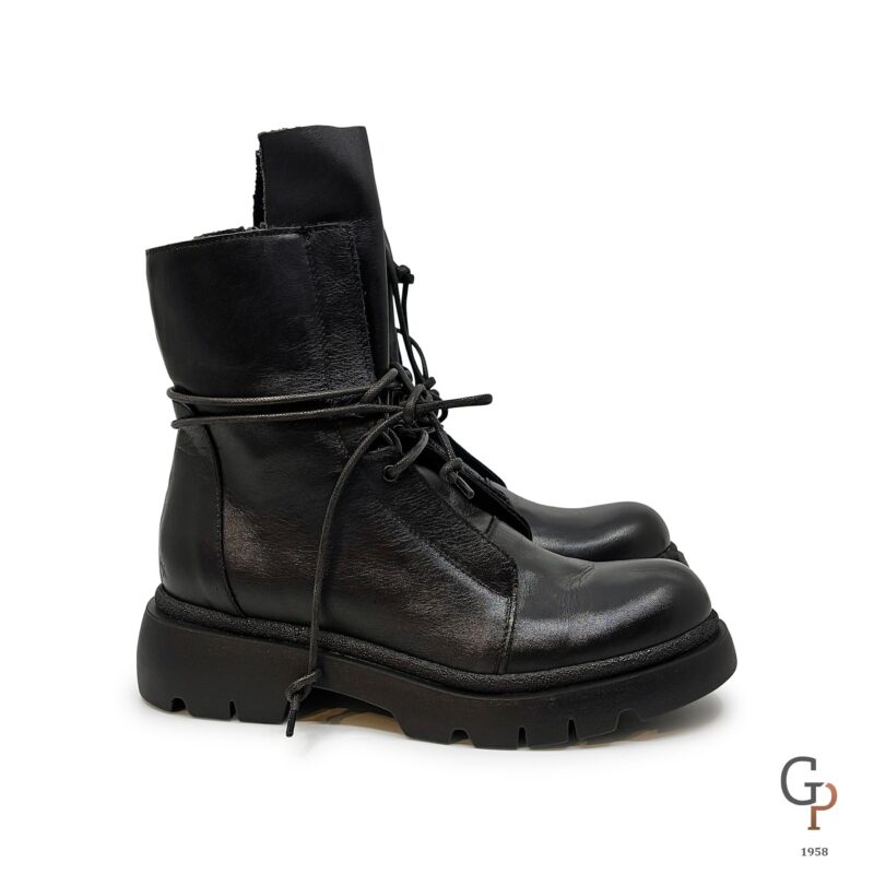 Anfibio in morbida pelle, con suola in gomma ultraleggera. Modello nuovo e originale, laccio e zip interna per una calzata facilissima e veloce. made in Italy