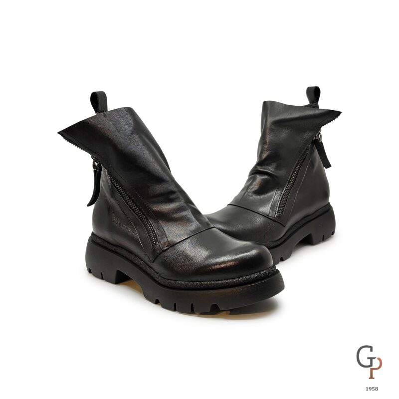 Biker in pelle morbidissima con doppia zip, punta tonda, suola grossa in gomma ultraleggera. Indistrittibili e comodissimi si confermano un best seller per l’inverno. Made in Italy