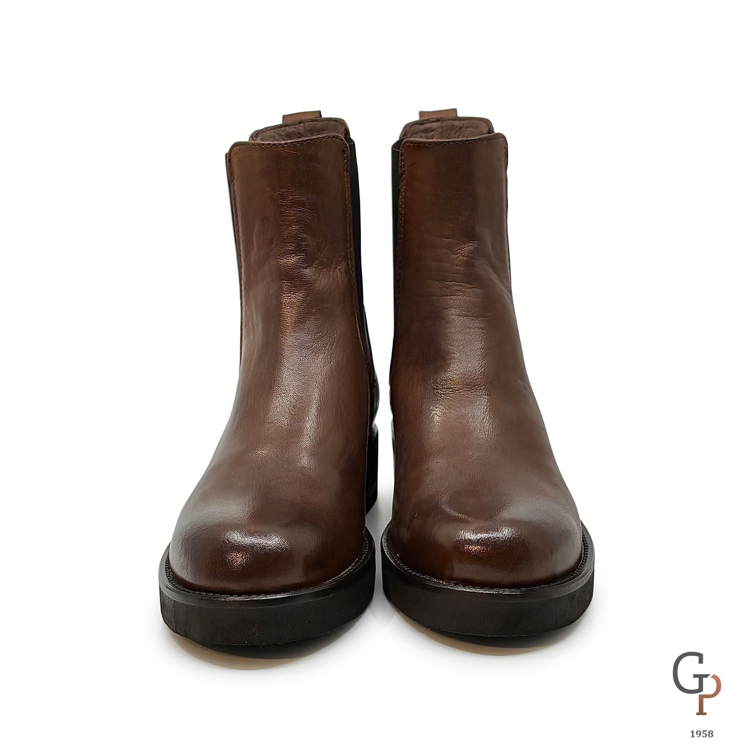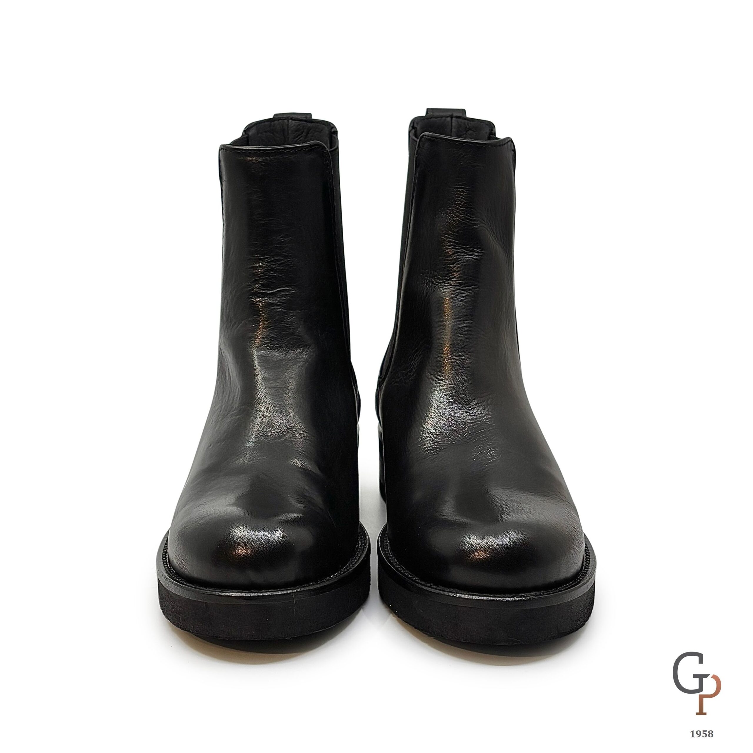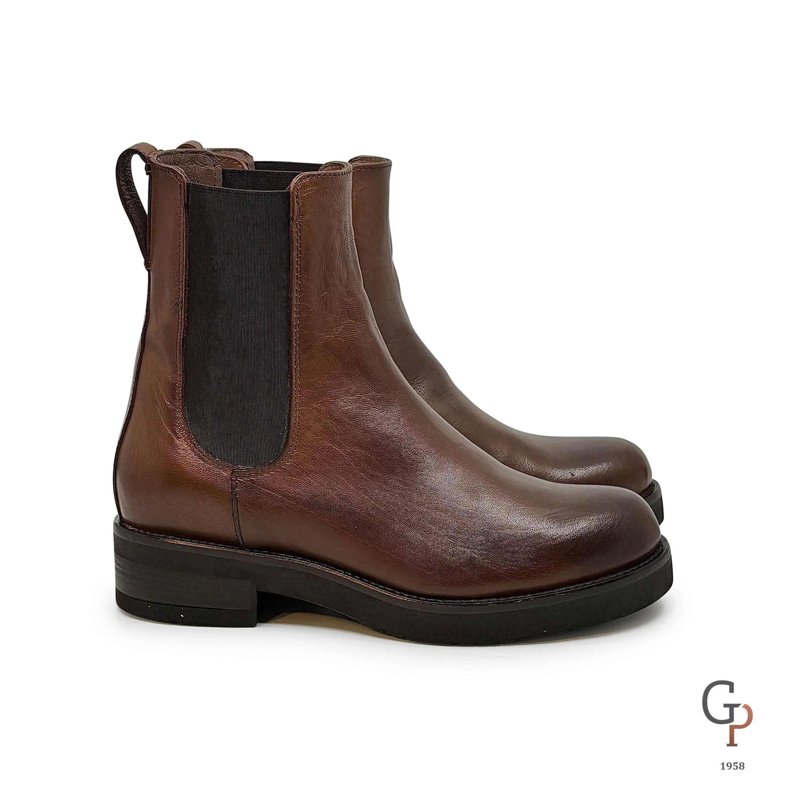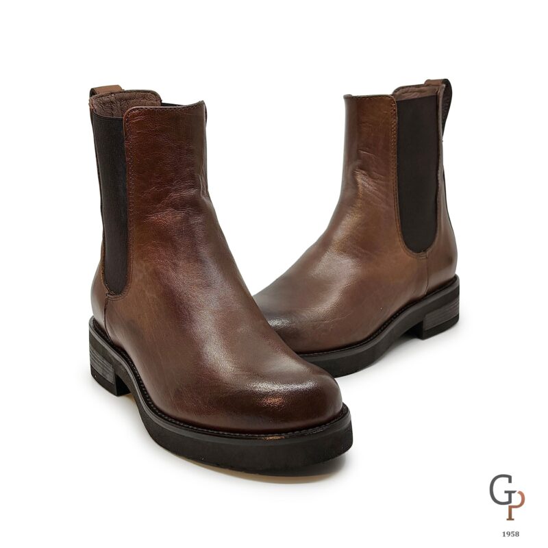 Beatles liscio in pelle con gambale alto. Punta tonda, molto comodo, suola in gomma e tacco di 3cm. Calzata abbondante, made in Italy