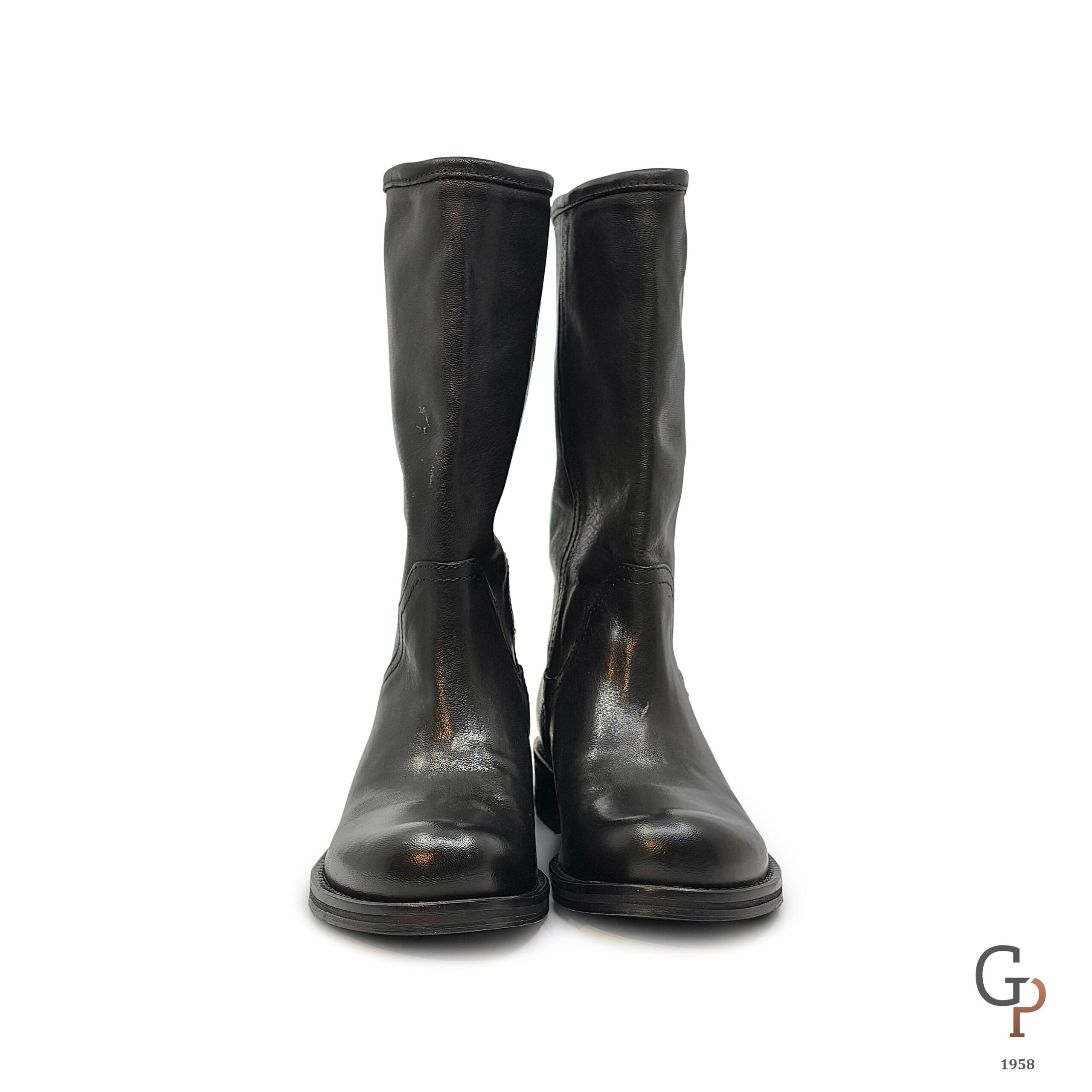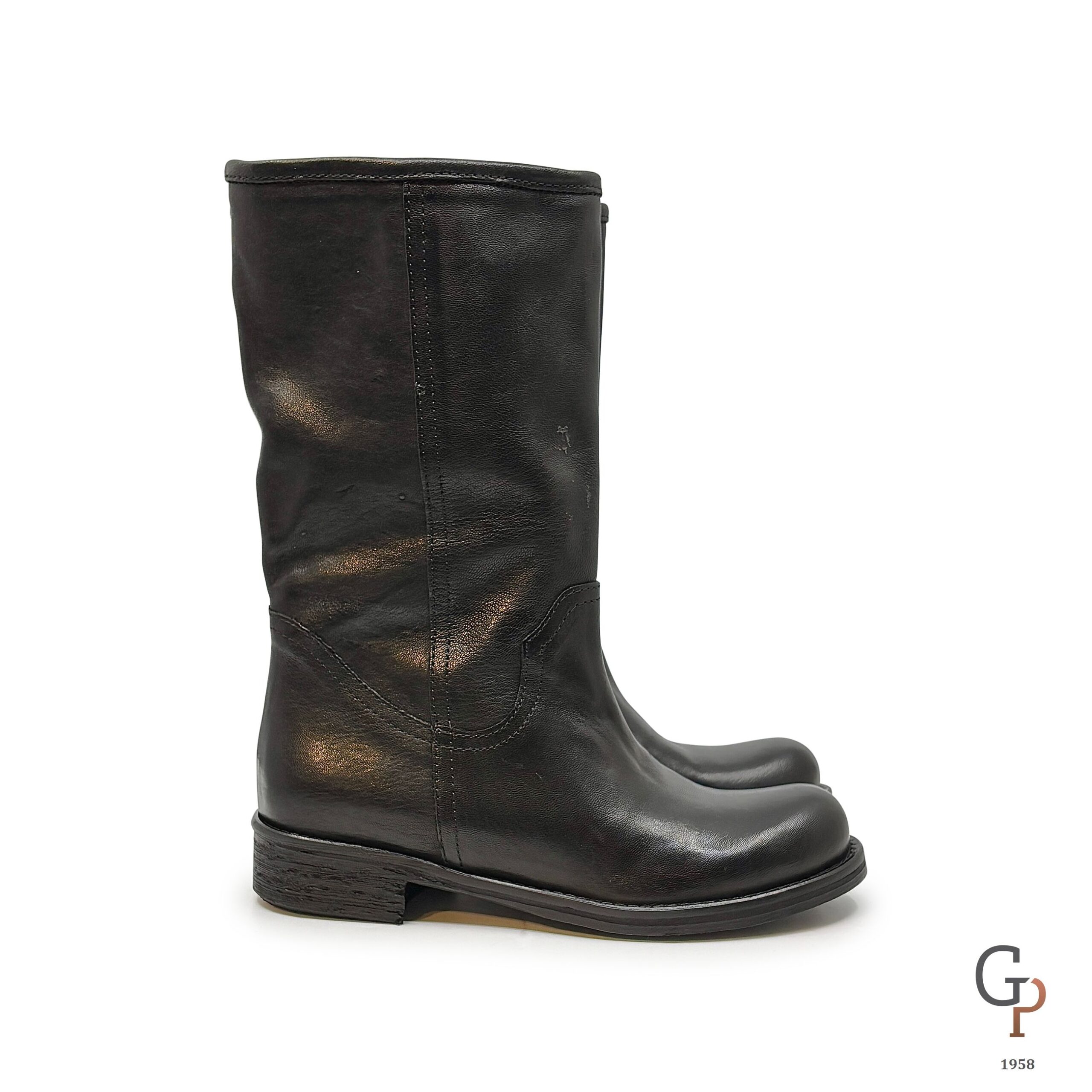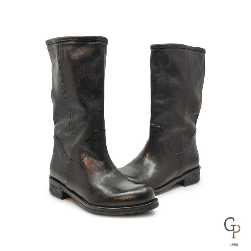 BIker 3/4 in pelle liscia, punta tonda tacco 3cm. Tubolare, la pelle del gambale è morbidissima e può essere indossato anche leggermente arricciato sul polpaccio. Calzata comoda.