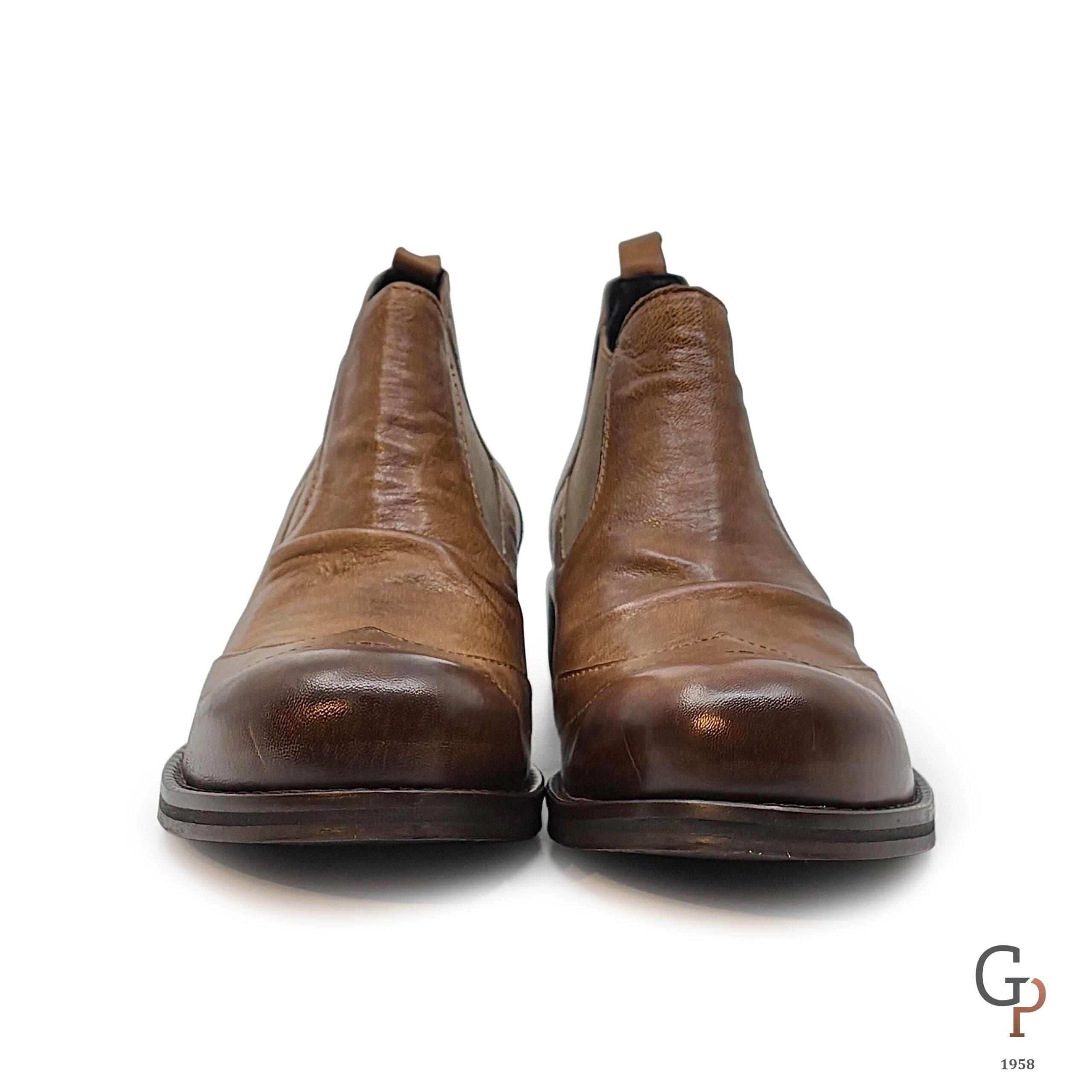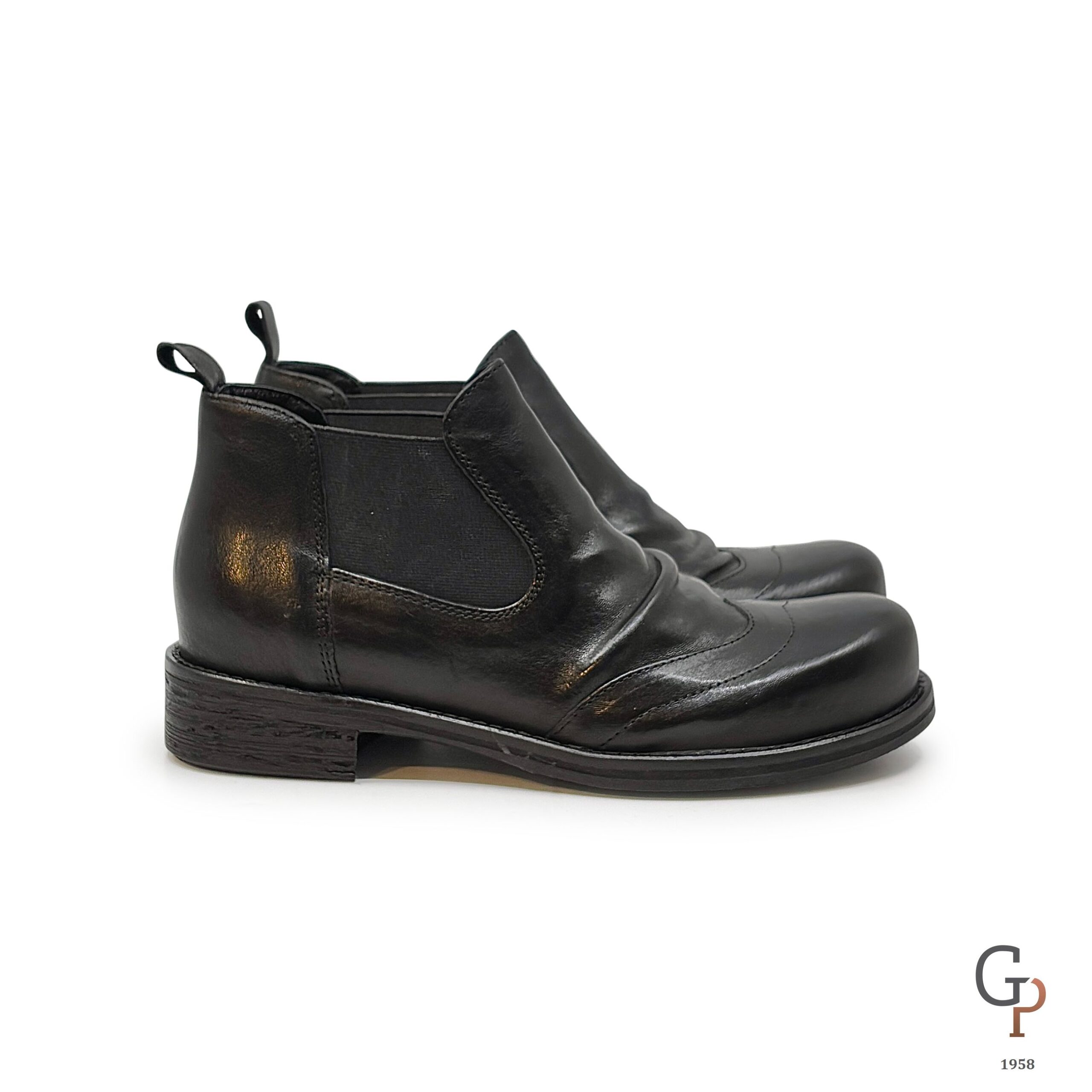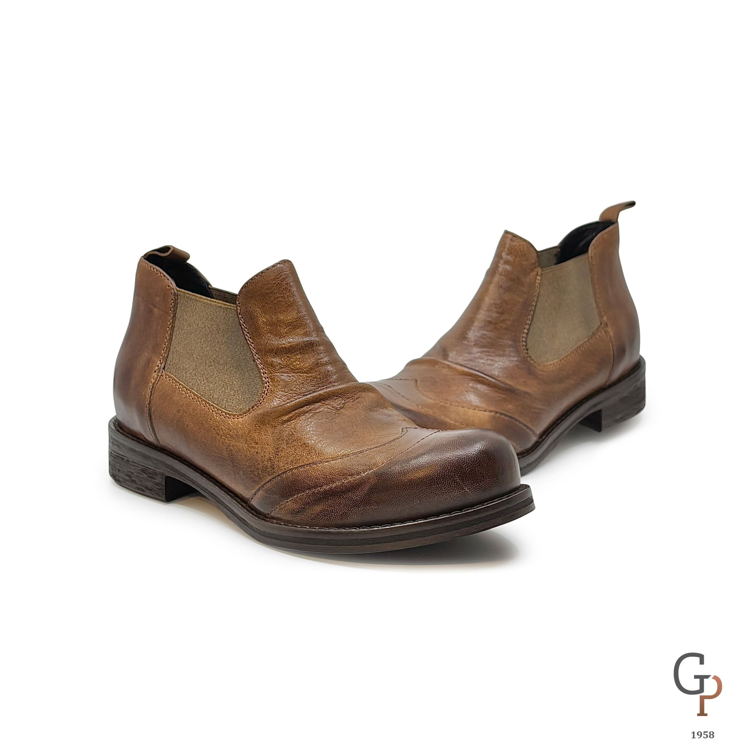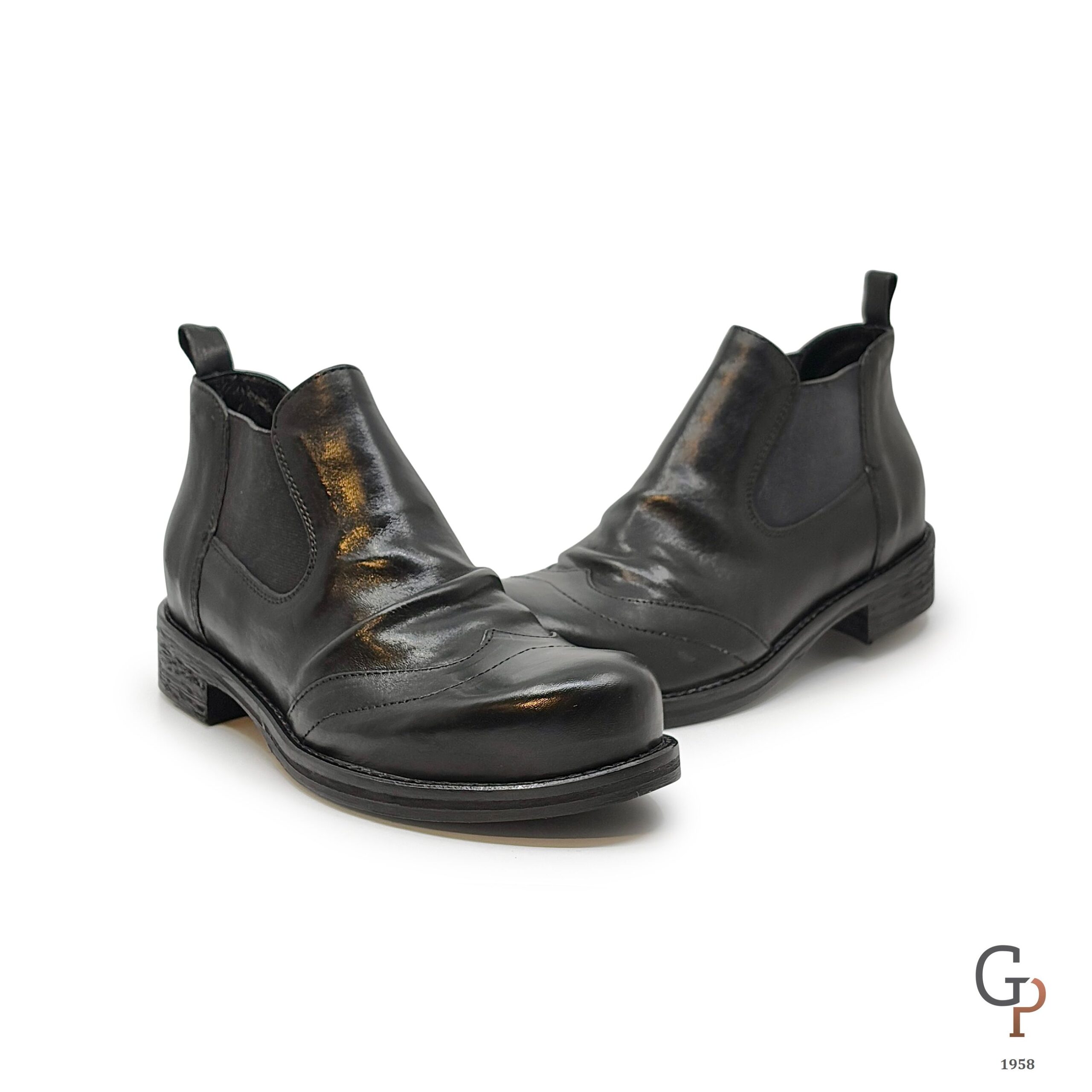 Beatles in pelle effetto vintage, arricciato sul collo del piede con coda di rondine, punta tonda. Originale e divertente.
